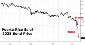 Puerto Rico was in severe debt-slave trouble well before hurricane Maria. The storm pushed it over the cliff, and Donald “The Red Queen” Trump finished the job by saying “no bailout for Puerto Rico.”