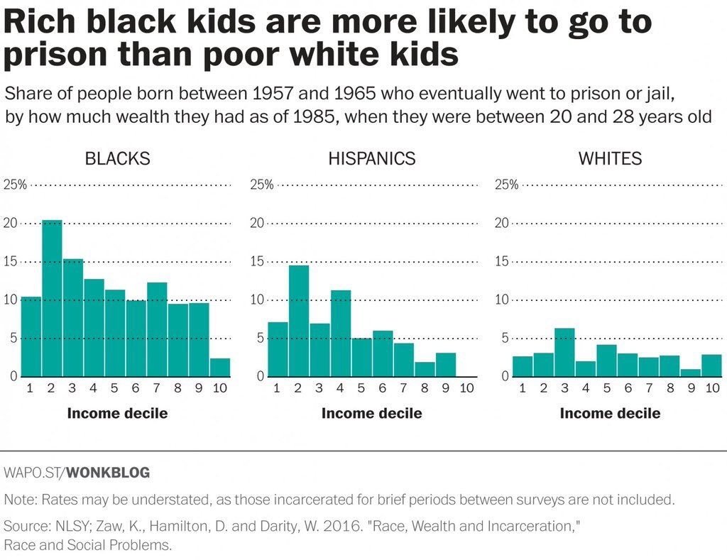 Rich black kids are more likely to go to prison than poor white kids